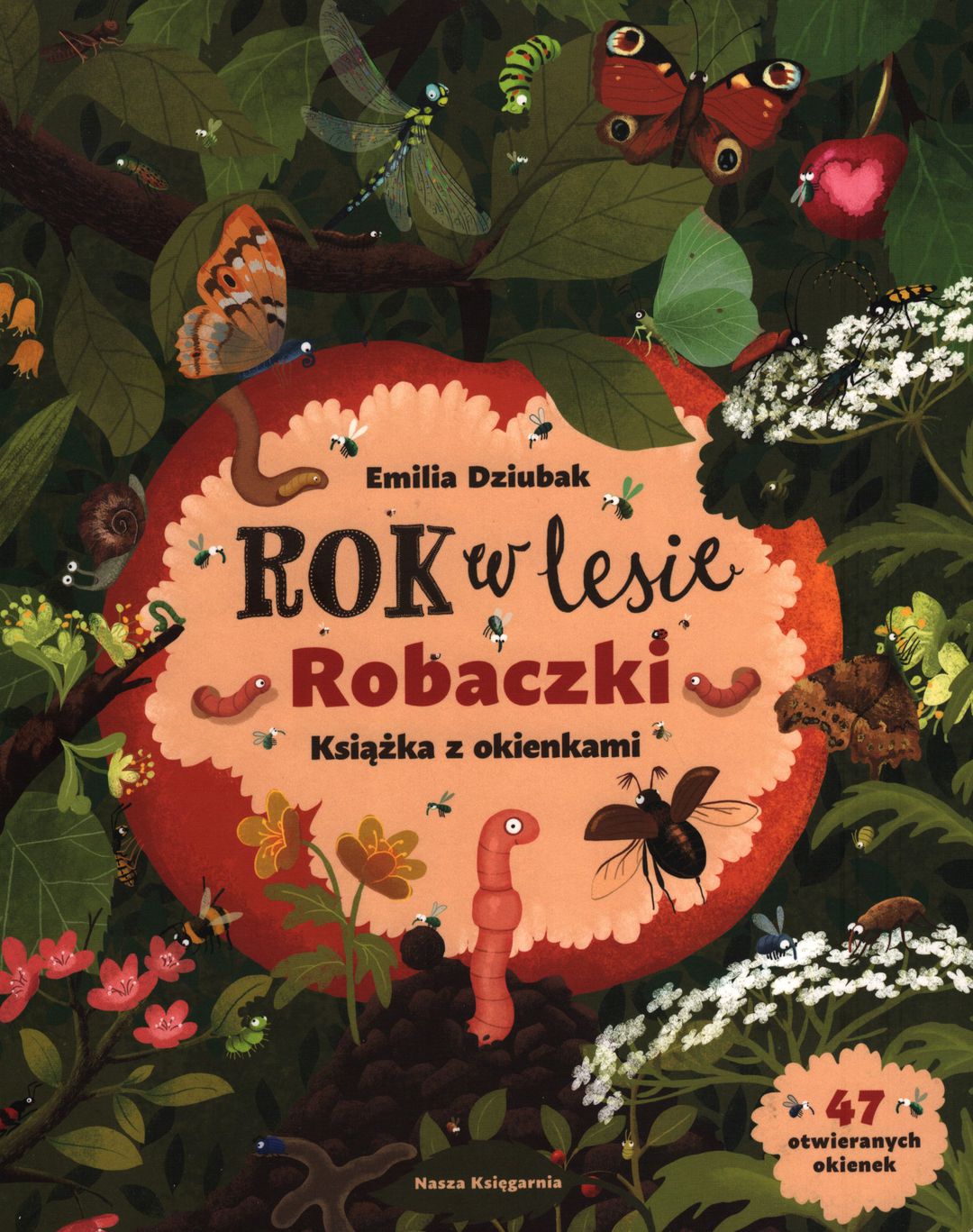 Rok w lesie : robaczki / Emilia Dziubak. - Warszawa : Nasza Księgarnia, copyright 2023. - [14] stron : ilustracje ; 25 cm.